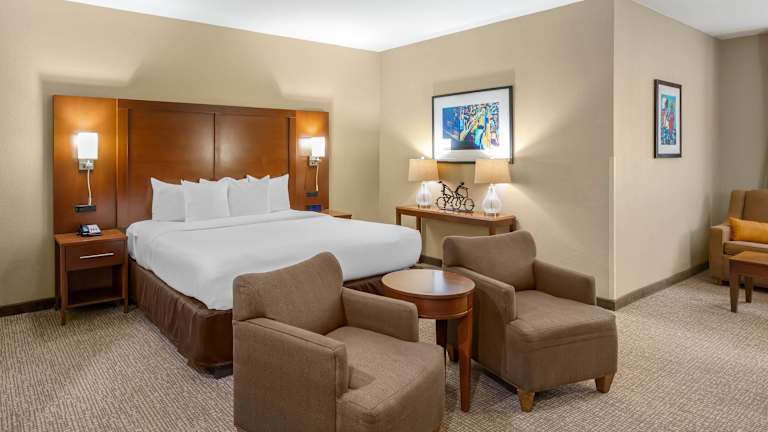 Das Comfort Inn Memphis Downtown bietet geräumige Zimmer mit herrlichem Blick auf den Mississippi River. Die Zimmer sind komfortabel und mit einer Vielzahl von Annehmlichkeiten ausgestattet, darunter eine Kaffeemaschine, ein Bügeleisen/-brett, eine Mikrowelle und einen Kühlschrank. Die Business Class Suiten verfügen über zusätzliche Annehmlichkeiten wie eine Wet Bar und einen DVD-Player.