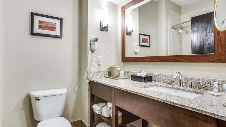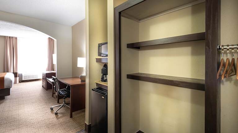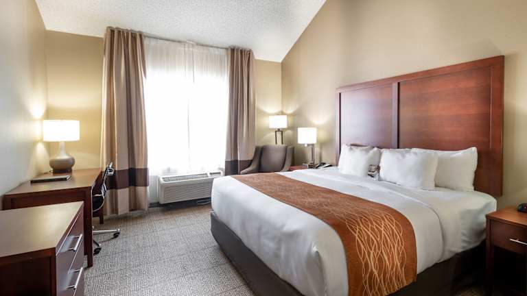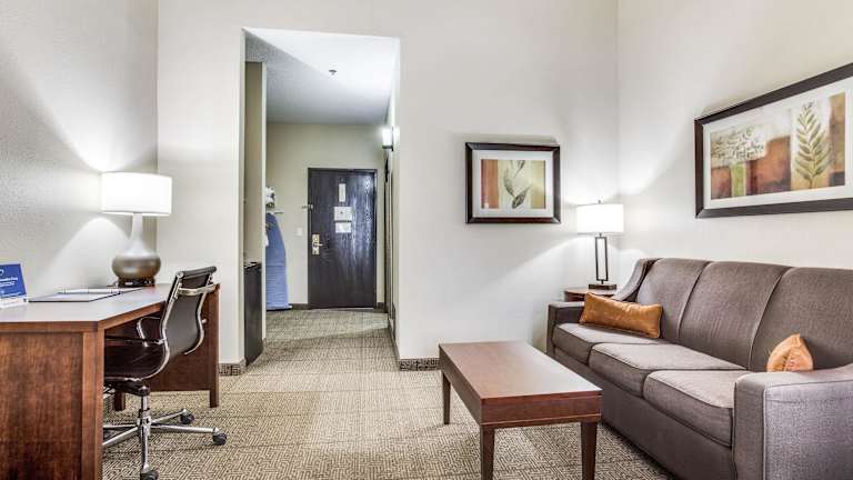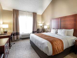 Die Zimmer im Comfort Inn & Suites Love Field - Dallas Market Center sind komfortabel eingerichtet und verfügen über Annehmlichkeiten wie kostenfreies WLAN, einen Flachbild-TV, eine Mikrowelle und einen Kühlschrank. Die Zimmer sind Nichtraucherzimmer und bieten einen Schreibtisch, ein Bügeleisen und ein Bügelbrett sowie Kaffee- und Teezubehör.