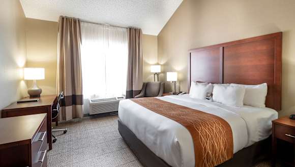 Das Comfort Inn & Suites Love Field - Dallas Market Center bietet komfortable Zimmer und einen zuvorkommenden Service in perfekter Lage. Genießen Sie modernen Komfort und profitieren Sie von der Nähe zum Dallas Market Center, der Galleria Dallas und dem West End Historic District.