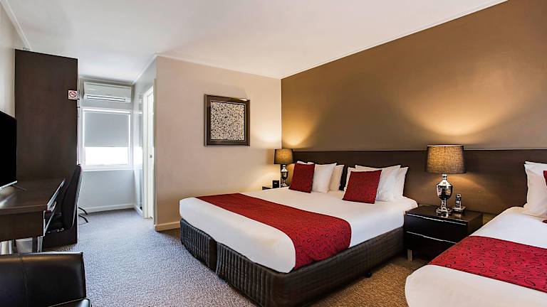 Das Comfort Inn Western Hotel bietet 20 geschmackvoll eingerichtete Nichtraucherzimmer. Jedes Zimmer ist klimatisiert und verfügt über Annehmlichkeiten wie einen Kühlschrank, eine Kaffeemaschine, einen Schreibtisch, einen Haartrockner, ein Bügeleisen und ein Bügelbrett. Einige Zimmer bieten auch einen Balkon und einen Flachbild-TV.