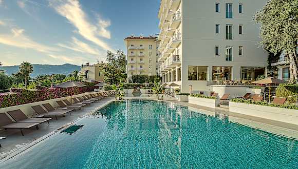 Das Hotel Conca Park in Sorrent ist ein charmantes Hotel, das von mediterraner Vegetation umgeben ist und einen atemberaubenden Blick auf das historische Zentrum und die Stadtmauern von Sorrent bietet. Hier können Sie einen entspannten und erholsamen Aufenthalt in einer gelassenen Atmosphäre genießen. Das Hotel bietet ein Wellnesscenter, einen Außenpool und komfortable, klimatisierte Zimmer mit kostenfreiem WLAN. Ein besonderes Highlight ist das internationale Frühstücksbuffet mit regionalen Produkten und hausgemachten Eierspeisen. Die beiden eleganten Restaurants des Hotels servieren klassische sorrentinische Gerichte.