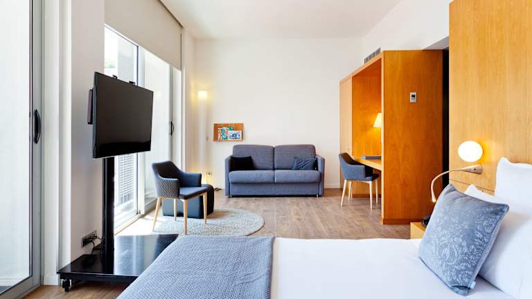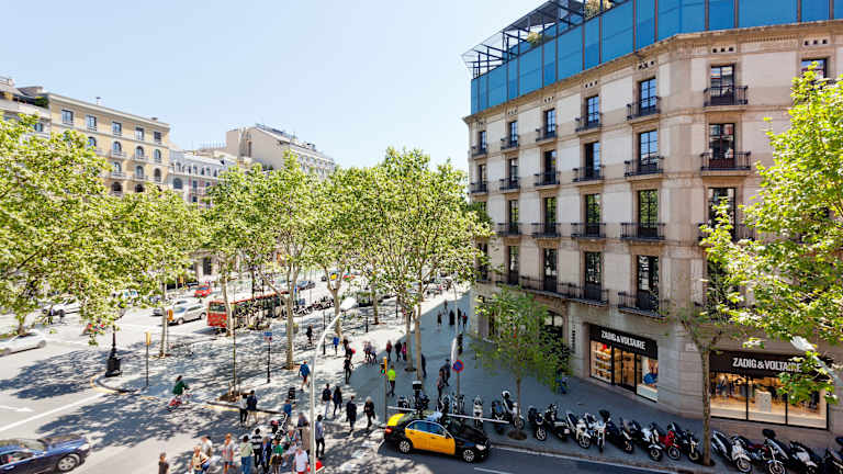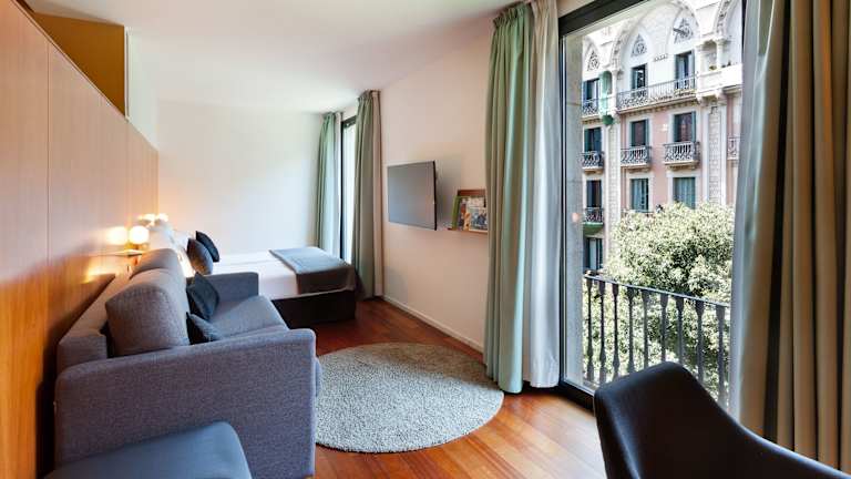 Das Hotel verfügt über insgesamt 235 Zimmer, darunter 6 Junior-Suiten und 3 Suiten. Die Zimmer sind klimatisiert und schallisoliert und bieten Annehmlichkeiten wie einen LCD-Sat-TV und einen Laptop-Safe. Die meisten Zimmer bieten entweder einen Balkon mit Blick auf den Passeig de Gràcia oder einen ruhigen Innenhof im Viertel Eixample.