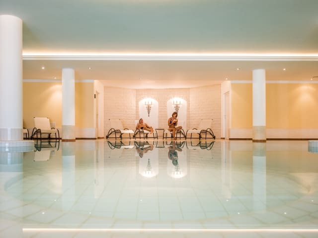 Schwimmbad 15m mit Liegewiese, Finnische Sauna, Infrarotsauna, Dolomitensauna, Lärchen-Textilsauna, Dampfbad - Nutzung kostenlos. Neuer Panorama TechnoGym-Fitnessraum. Private Whrilwannen gegen Bezahlung, Spielraum für Erwachsene mit Darts, Billard, Tischfußball und 10m Luftgewehrschießstand. Kinderspielraum mit Billard, Videogames, Tischfußball, im Sommer Spielplatz im Freien.