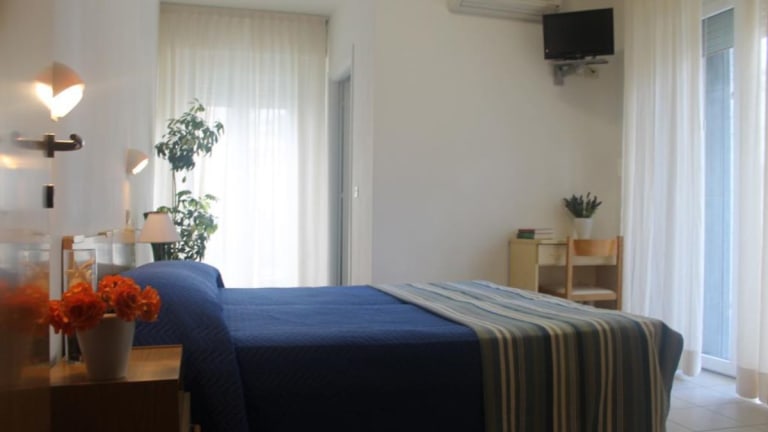 Das La Plata Hotel - con piscina in Riccione ist die ideale Wahl für einen entspannten Strandurlaub. Das Hotel liegt nur 100 m vom Strand entfernt und bietet kostenfreies WLAN und einen schönen Garten mit einem Außenpool. Die klimatisierten Zimmer sind komfortabel eingerichtet und verfügen über einen Flachbild-TV. Genießen Sie ein kontinentales Frühstück und probieren Sie mediterrane Köstlichkeiten im hoteleigenen Restaurant. Die Lage des Hotels ist perfekt, nur 2 km vom Bahnhof Riccione entfernt und eine 20-minütige Fahrt von Rimini entfernt.