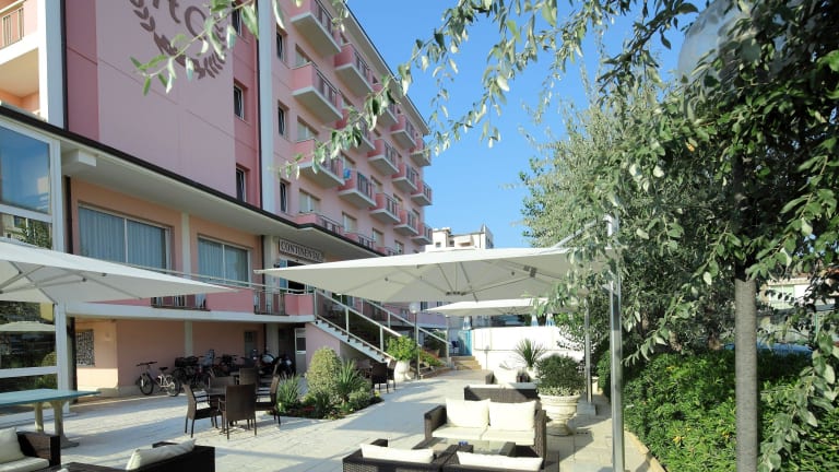 Ausreichend Parkplätze, ein Garten mit Tischtennisplatte, in dem Kinder spielen können und Fahrräder stehen zur Verfügung. 2 moderne Aufzüge gehen direkt vom Erdgeschoss in die einzelnen Etagen. Das Hotel ist in allen Räumen klimatisiert und beheizt. Wäsche- und Baby-sitting Service auf Anfrage. Der gemütliche Aufenthaltsraum mit Bar verfügt über eine grosse Panoramaterrasse. Nur hier kann man noch die frische Meeresluft in der ersten Reihe geniessen. Der freundliche Leseraum ist mit einem Internet-point (wi-fi), Spieltischen, einer Spielecke für Kinder, einem Sat-TV und gibt die Möglichkeit, sich zurückzuziehen oder zusammen mit Freunden Geselligkeit zu pflegen.
