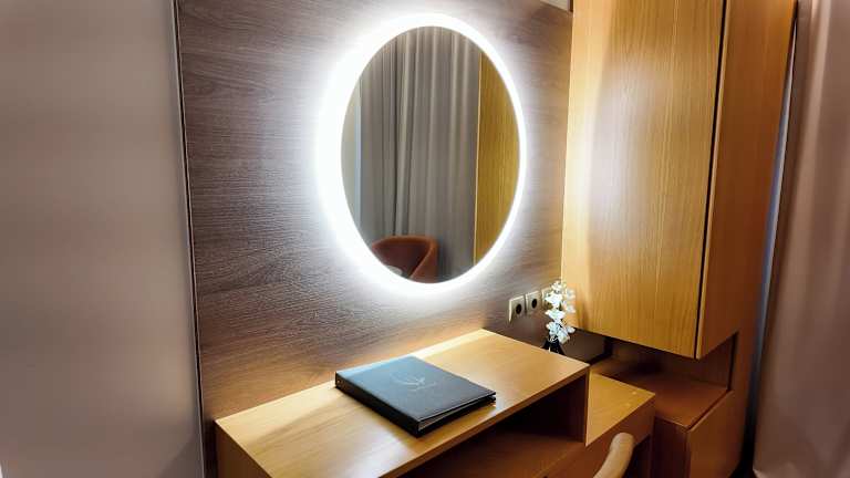 Die Zimmer sind klimatisiert und bieten Annehmlichkeiten wie LCD-Sat-TV, Radio und Schreibtisch. Einige Zimmer verfügen über einen Balkon mit Meerblick. Zur Ausstattung gehören ein Doppelbett, ein Sofabett, Minibar, Kühlschrank und Tee-/Kaffeemaschine. Die Badezimmer sind mit Dusche und Badewanne ausgestattet, und es stehen Haartrockner sowie Kosmetikartikel zur Verfügung. Rollstuhlgerechte Zimmer sind buchbar.