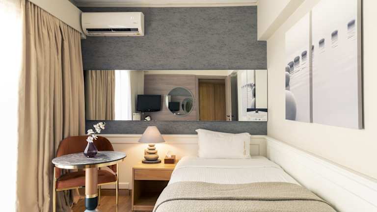 Das Hotel befindet sich in Paleo Faliron, einem eleganten Vorort von Athen direkt am Meer. Zum Stadtzentrum von Athen sind es mit öffentlichen Verkehrsmitteln nur wenige Kilometer. In der Nähe liegt auch der Hafen von Piräus, der in 15 Fahrminuten erreichbar ist. Die Entfernung zum Flughafen El. Venizelos beträgt ca. 40 Minuten.