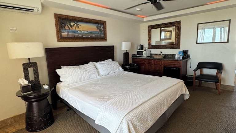 Das Hotel Coral Reef in Kapaa auf Hawaii bietet eine ideale Lage direkt am Meer und in der Nähe der historischen Stadt Kapaa. Hier können Sie einen entspannten Urlaub inmitten einer atemberaubenden Kulisse genießen. Der Lagunenpool am Meer und die kostenlosen WLAN-Zugänge in den Zimmern und in der Lobby sorgen für zusätzlichen Komfort. Die Zimmer bieten einen Balkon mit Meerblick und sind nur wenige Schritte vom Ozean entfernt. Die Terrasse am Pool lädt zum Entspannen ein und kostenlose Parkplätze stehen zur Verfügung. In der Umgebung gibt es zahlreiche Restaurants, Geschäfte und Aktivitäten wie Schnorcheln, Hubschrauberflüge, Kajakfahren, Walbeobachtungen und Bootsfahrten mit Abendessen.