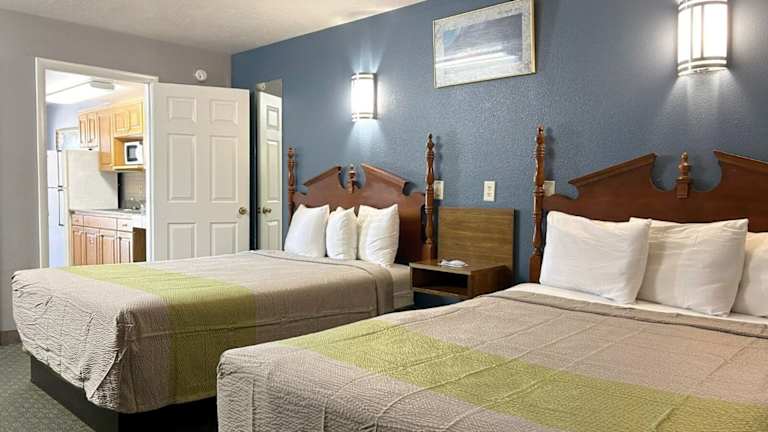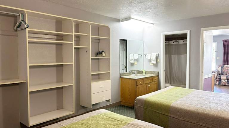 Das Coronada Inn & Suites bietet geräumige Zimmer mit separatem Wohnbereich und Küchenzeile. Jedes Zimmer verfügt über ein Schlafzimmer und ein Wohnzimmer, beide mit einem eigenen Fernseher. Die Küchenzeile ist mit einer Mikrowelle und einem Kühlschrank ausgestattet, so dass Sie Ihre eigenen Mahlzeiten zubereiten können.
