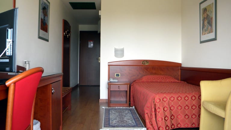 Die Zimmer im Hotel Corone sind hell und klassisch eingerichtet. Sie sind klimatisiert und verfügen über Annehmlichkeiten wie einen Flachbild-TV, eine Minibar und einen Balkon. Genießen Sie den Komfort und die Gemütlichkeit dieser Zimmer nach einem langen Tag voller Erkundungen.
