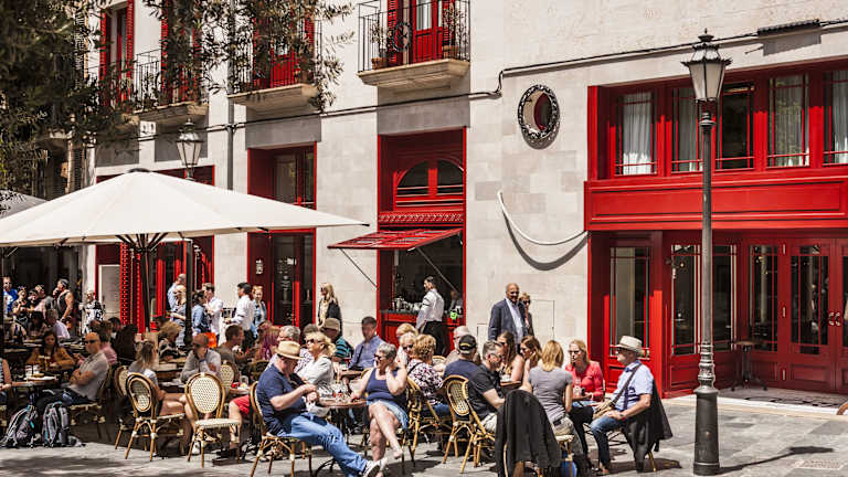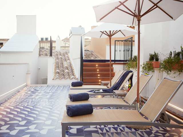 Das Hotel Cort in Palma de Mallorca bietet eine ideale Lage nur wenige Gehminuten vom Hafen entfernt. Hier erwartet Sie ein stilvolles Ambiente, eine Dachterrasse mit Pool und Bar sowie ein Restaurant mit mediterraner Küche. Die Zimmer sind geschmackvoll eingerichtet und bieten Annehmlichkeiten wie eine Minibar und kostenfreies WLAN. In der Umgebung finden Sie zahlreiche Einkaufsmöglichkeiten, Bars und Restaurants. Die wichtigsten Sehenswürdigkeiten von Palma, wie die Kathedrale und die Plaza Mayor, sind ebenfalls bequem zu Fuß erreichbar.