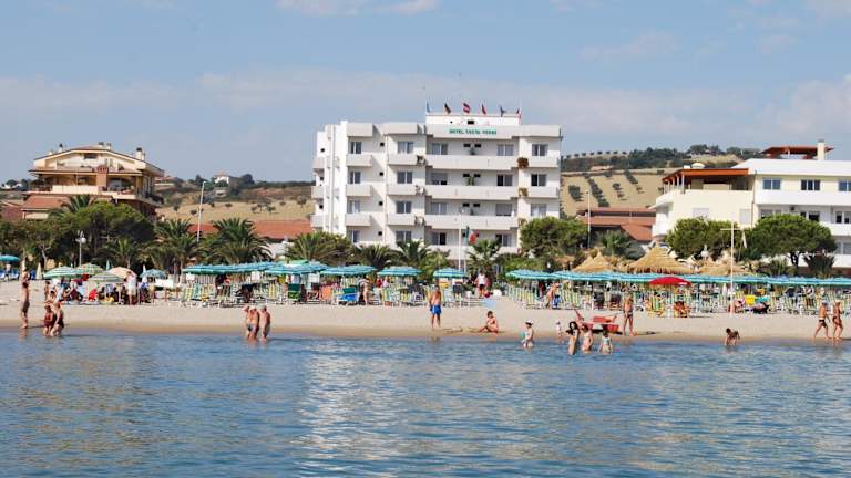 Das Hotel Costa Verde liegt in Tortoreto Lido und bietet Ihnen eine ideale Lage direkt am Strand. Genießen Sie den atemberaubenden Meerblick und entspannen Sie sich am eigenen Strand des Hotels. Die Umgebung lädt zu Spaziergängen entlang der Küste und zu Ausflügen in die nahe gelegenen Orte ein. Der Bahnhof Tortoreto liegt nur 1,5 km entfernt und die Autobahn A14 erreichen Sie nach 8 km.