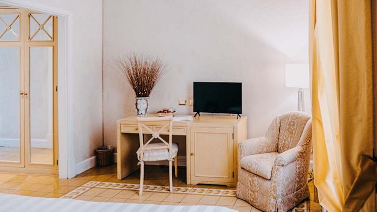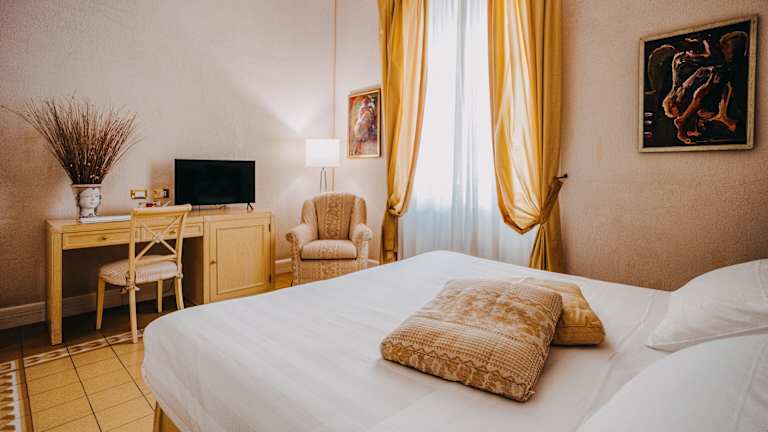 Die 19 Zimmer des Hotels sind stilvoll eingerichtet und bieten modernen Komfort. Jedes Zimmer verfügt über kostenfreies WLAN, Sat-TV und eine Minibar. Einige Zimmer bieten zudem einen Blick auf den Garten oder die umliegende Gegend. Die Zimmer sind klimatisiert und verfügen über ein eigenes Badezimmer mit Haartrockner und Bidet.