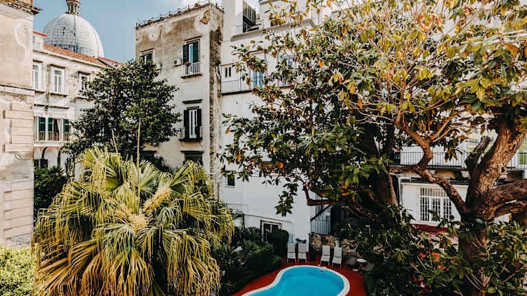 Das Hotel Costantinopoli 104 in Neapel bietet seinen Gästen ein einzigartiges Erlebnis in einer historischen Villa im Herzen der Stadt. Mit einem schönen Garten, einem Pool und einer Terrasse ist das Hotel der perfekte Ort, um sich zu entspannen und die Atmosphäre von Neapel zu genießen. Die modernen Zimmer bieten allen Komfort, den man sich wünschen kann, und das Frühstücksbuffet sorgt für einen gelungenen Start in den Tag. Die zentrale Lage ermöglicht es den Gästen, die Sehenswürdigkeiten der Stadt bequem zu erkunden.