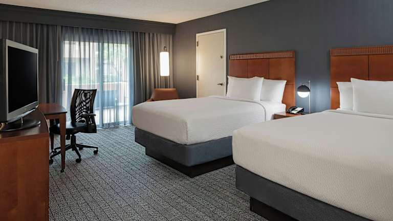 Die Zimmer im Courtyard Anaheim Buena Park Hotel sind komfortabel und bieten eine Vielzahl von Annehmlichkeiten. Jedes Zimmer verfügt über ein Doppelbett oder ein Schlafsofa, eine Klimaanlage und Heizung. Zur Ausstattung gehören auch ein Safe, eine Minibar, eine Mikrowelle, eine Kaffeemaschine und ein Schreibtisch. Ein Flachbildfernseher mit Kabelempfang und Pay-per-View-Option ist ebenfalls vorhanden. Das Badezimmer verfügt über eine Dusche oder eine Badewanne, einen Haartrockner und Bademäntel.