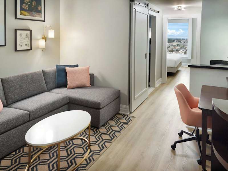 Die Zimmer im Courtyard by Marriott New Orleans French Quarter/Iberville sind modern eingerichtet und verfügen über einen Flachbild-TV, einen Schreibtisch, eine Kaffeemaschine und einen kleinen Kühlschrank. Das Hotel bietet auch Annehmlichkeiten wie Highspeed-WLAN und einen Zimmerservice.