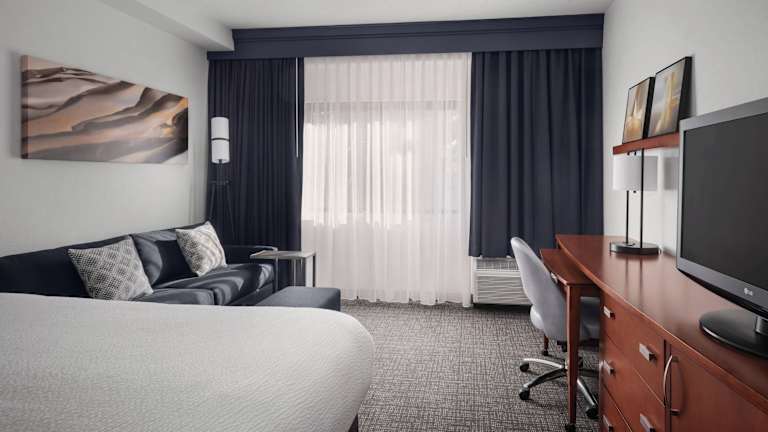 Die Zimmer im Courtyard by Marriott Rockville MD sind komfortabel und bieten kostenfreien Internetzugang sowie luxuriöse Betten. Gäste können auch den Fitnessraum nutzen, der mit Kardiogeräten und Freihanteln ausgestattet ist. Das Hotel verfügt über ein Eat.Getränke.Connect. Bistro, in dem amerikanische Küche sowie Cocktails serviert werden.