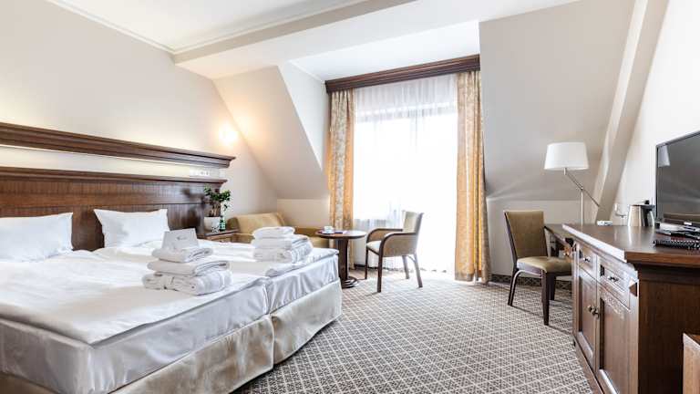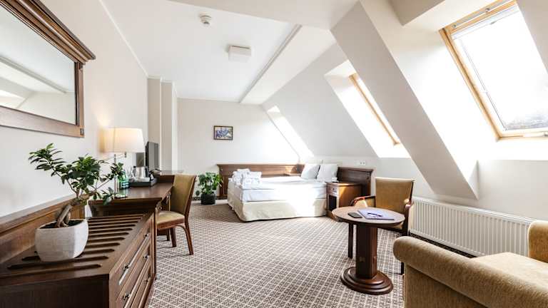 Das Hotel Crocus verfügt über 49 Zimmer, darunter 5 Junior-Suiten, 3 Suiten, Apartments, Einzel- und Doppelzimmer. Die Zimmer sind geräumig und elegant eingerichtet und bieten Sat-TV, kostenfreies WLAN, einen komfortablen Sitzbereich mit Sofa, eine Minibar und einen Arbeitsbereich. Einige Zimmer verfügen auch über einen Balkon mit herrlichem Blick auf die Hohen Tatra.