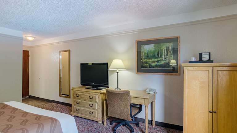 Das Quality Inn Hotel verfügt über 60 Zimmer auf 2 Etagen, die mit einem Aufzug erreichbar sind. Die Zimmer sind komfortabel und mit Klimaanlage, Kühlschrank, Tee-/Kaffeemaschine und TV ausgestattet. Ein Balkon lädt zum Verweilen ein und in den Badezimmern stehen Dusche, Badewanne und Haartrockner zur Verfügung.
