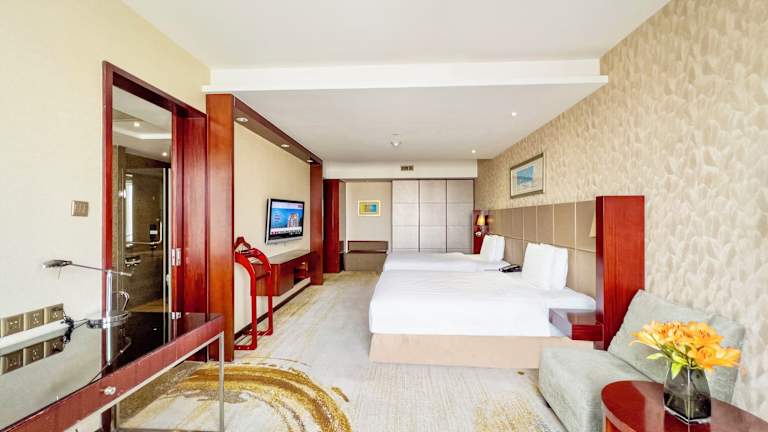 Die Zimmer im Crowne Plaza Beijing Zhongguancun sind geräumig und bieten einen modernen und stilvollen Rückzugsort. Jedes Zimmer verfügt über eine Minibar, einen DVD-Player und einen Flachbild-Kabel-TV. Das eigene Badezimmer ist mit einer separaten Badewanne und einer Regendusche ausgestattet. Die Zimmer bieten auch Highspeed-Internetzugang, um den Gästen eine nahtlose Verbindung zu ermöglichen.
