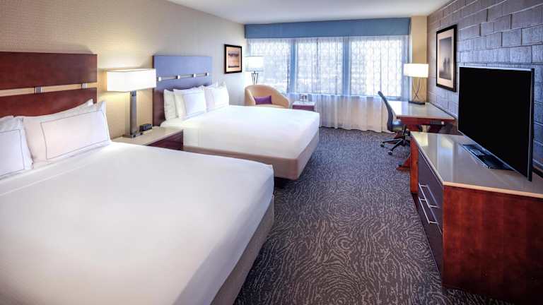 Die modernen Zimmer im Doubletree By Hilton Hotel sind geschmackvoll eingerichtet und verfügen über dunkle Holzmöbel. Zur Ausstattung gehören ein 32-Zoll-LCD-TV, eine Kaffeemaschine, kostenfreies WLAN und Filme im Zimmer. Jedes Zimmer bietet auch eine gemütliche Sitzecke, in der Sie sich entspannen können.