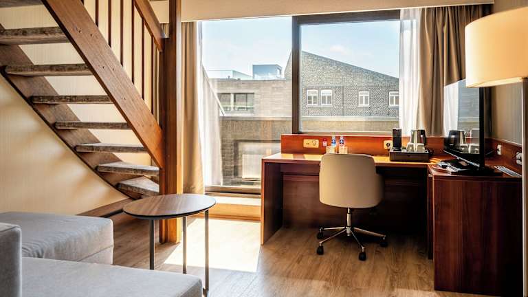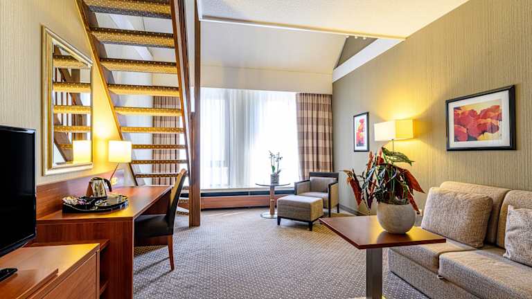 Die Zimmer im Crowne Plaza Maastricht sind komfortabel und bieten einen separaten Wohnbereich mit Kabel-TV. Jedes Zimmer ist geschmackvoll eingerichtet und verfügt über Annehmlichkeiten wie einen Bademantel, eine Minibar, einen Schreibtisch und einen Tee-/Kaffeezubereiter. Die Betten sind mit hochwertiger Bettwäsche, Kissen und Matratzenauflagen ausgestattet, um Ihnen eine angenehme Nachtruhe zu ermöglichen.