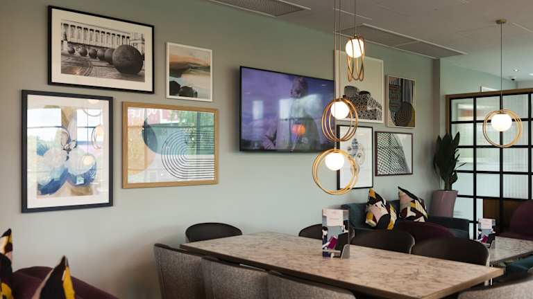Das Restaurant im Crowne Plaza Birmingham NEC Hotel bietet einen atemberaubenden Blick auf den See und serviert köstliche Speisen. Gäste können auch auf der Terrasse im Freien speisen und die schöne Umgebung genießen. Die Bar des Hotels lädt mit bequemen Sofas zum Verweilen ein. Darüber hinaus gibt es auch ein Starbucks-Café in der Unterkunft.