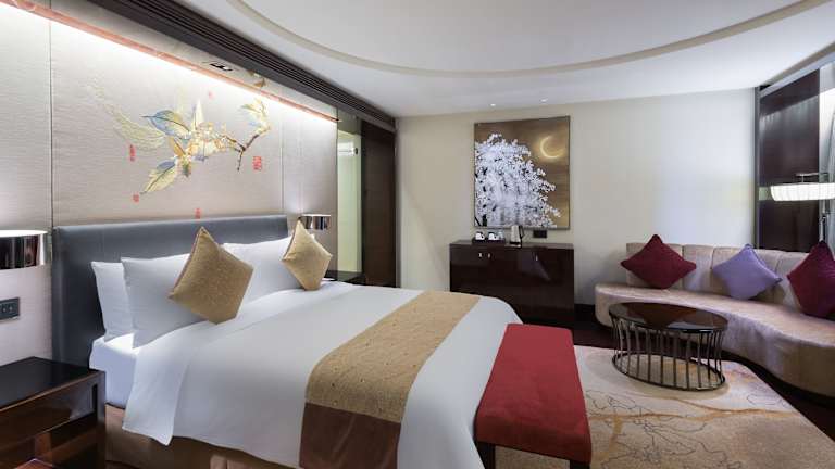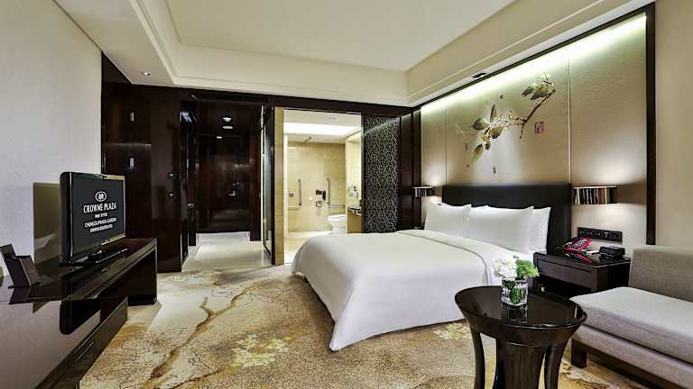 Die Zimmer im Crowne Plaza Panda Garden Chengdu sind elegant im orientalischen Stil eingerichtet und verfügen über eine komfortable Ausstattung. Zur Ausstattung gehören weiche Teppichböden, ein Flachbild-TV, ein Sofa und eine Minibar. Es stehen sowohl Raucher- als auch Nichtraucherzimmer zur Verfügung. Das private Badezimmer ist mit einer Badewanne und einem Haartrockner ausgestattet.