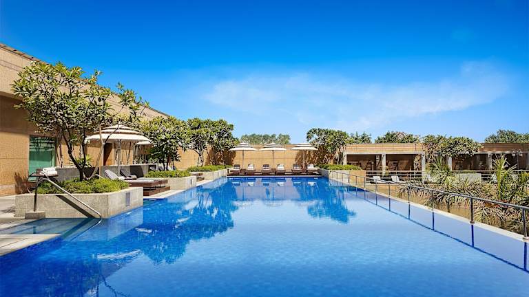 Das Crowne Plaza Today Gurugram, an IHG Hotel Gurgaon liegt an der NH8 und bietet eine günstige Lage für Geschäfts- und Freizeitreisende. Das Hotel befindet sich gegenüber den Signature Towers und ist nur etwa 14 km vom internationalen Flughafen Delhi entfernt. In der Nähe des Hotels befinden sich auch der U-Bahnhof Huda City Centre, das Kingdom of Dreams und die Cyber City.