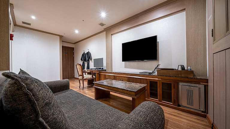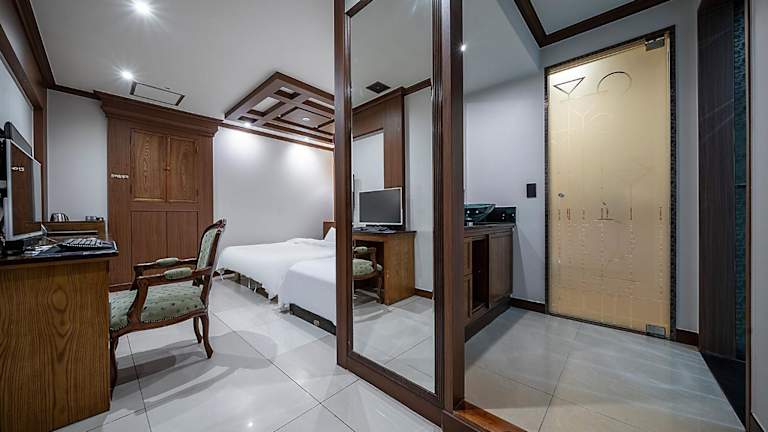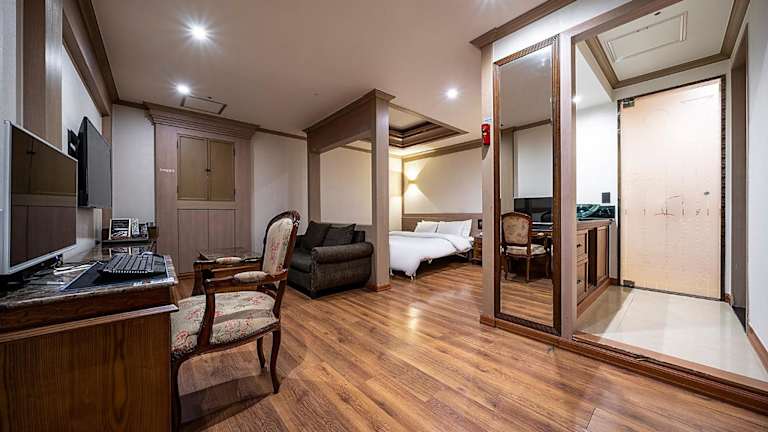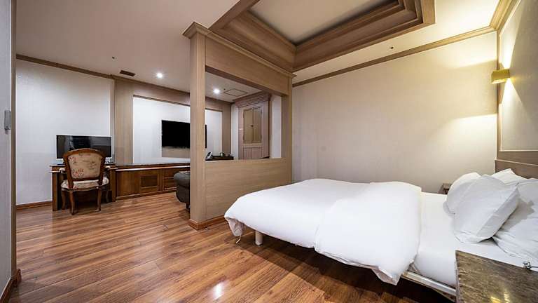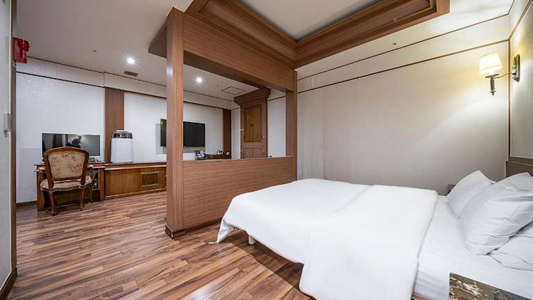 Die Zimmer im Hotel Cullinan Yongin sind geräumig und klimatisiert, was für einen angenehmen Aufenthalt sorgt. Jedes Zimmer ist mit einem Flachbild-TV, einem PC und kostenfreiem Internetzugang ausgestattet. Eine warme Beleuchtung schafft eine gemütliche Atmosphäre, und die komfortable Memoryschaum-Matratze sorgt für eine erholsame Nachtruhe. Zusätzliche Annehmlichkeiten wie eine Mikrowelle und ein Luftreiniger tragen zum Komfort der Gäste bei. Das eigene Bad ist mit einer Badewanne und einer separaten ebenerdigen Dusche ausgestattet, und einige Zimmer verfügen sogar über eine Whirlpool-Badewanne.