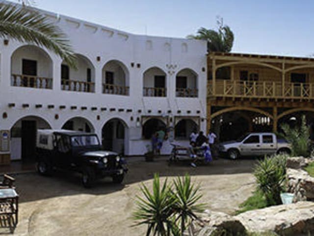 Wir sind ein kleines, familiäres Hotel mit Tauchbasis. Unser Hotelgebäude befindet sich in einem schönen Palmengarten, gleich am Meer (50 m). Die Tauchbasis und die technische Tauchbasis liegt direkt neben dem Hotelgebäude. Ein weiteres Unkunftsgebäude, genannt Moses-Haus befindet sich ca. 50 m vom Hauptgebäude entfernt.
