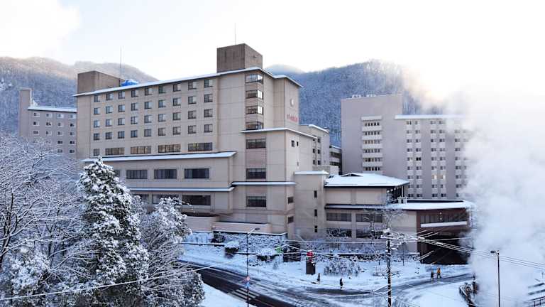 Das Dai-ichi Takimotokan liegt in Noboribetsu und bietet eine ideale Lage, nur 5 Gehminuten von den Thermalquellen Jigokudani und 12 Fahrminuten vom See Kuttara entfernt. Der JR-Bahnhof Noboribetsu ist mit dem Bus, der direkt vor dem Resort hält, in nur 15 Minuten erreichbar.