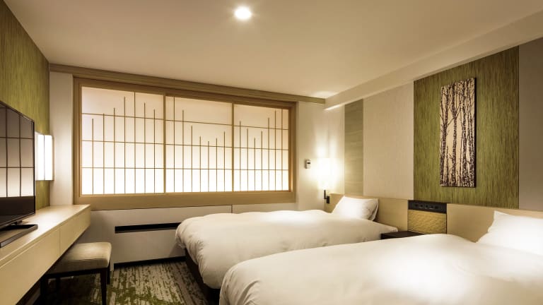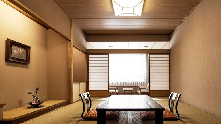Das Resort verfügt über insgesamt 399 Zimmer, die sich je nach Kategorie in 4 separaten Gebäuden auf dem Gelände befinden. Jedes Zimmer ist im traditionellen japanischen Stil eingerichtet und bietet Tatami-Böden aus gewebtem Stroh sowie Futon-Betten. Zur Ausstattung gehören ein Flachbild-TV, ein Kühlschrank und kostenfreies WLAN. Entspannen Sie sich in einem Yukata-Bademantel und genießen Sie eine Tasse Tee auf den Sitzkissen.