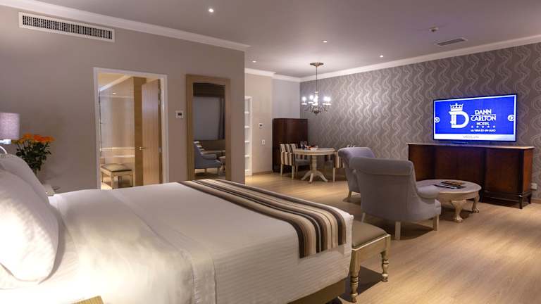 Die Zimmer im Hotel Dann Carlton Medellín sind geräumig und komfortabel. Sie verfügen über eine Klimaanlage, einen TV, eine Minibar und kostenloses WLAN. Zur Ausstattung gehören auch ein Sitzbereich und ein Schreibtisch. Einige Zimmer bieten zudem eine Terrasse mit Blick auf die Stadt.