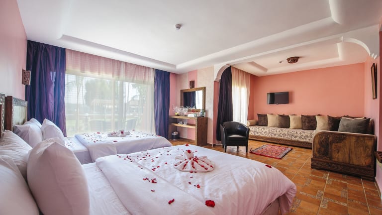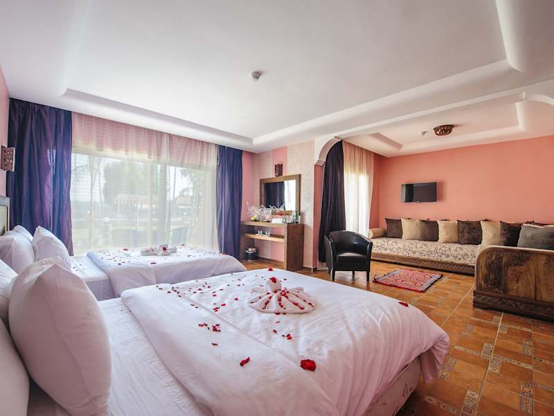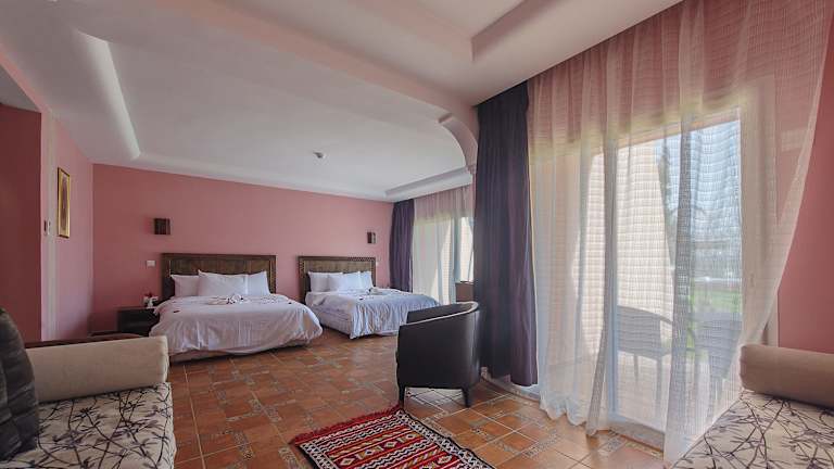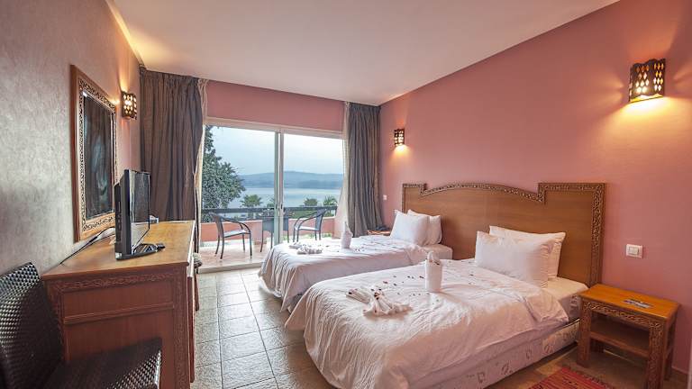 Das Hotel Dar Eddaya ist ein idyllisches 4-Sterne-Hotel, das von einem wunderschönen 7 Hektar großen Garten umgeben ist. Hier können Sie sich in einer ländlichen Umgebung entspannen und den Blick auf den See oder den Garten genießen. Das Hotel bietet komfortable Zimmer, ein Restaurant mit einer vielfältigen Auswahl an köstlichen Gerichten und einen erfrischenden Swimmingpool.