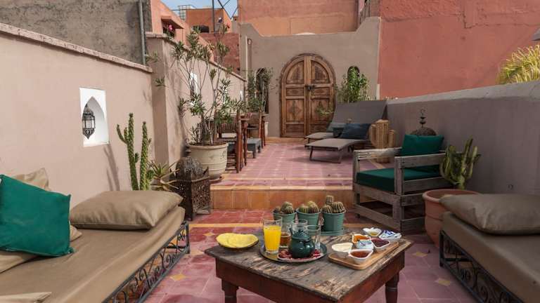 Das Riad la Cle de la Medina, location en exclusivite, befindet sich in einer erstklassigen Lage in Marrakesch, nur 3 Gehminuten vom berühmten Platz Jemaa El Fna entfernt. Diese zentrale Lage ermöglicht es Ihnen, die pulsierende Atmosphäre der Stadt zu erleben und gleichzeitig eine ruhige und entspannte Umgebung im Hotel zu genießen. In der Umgebung finden Sie zahlreiche Geschäfte, Restaurants und Sehenswürdigkeiten, die bequem zu Fuß erreichbar sind.