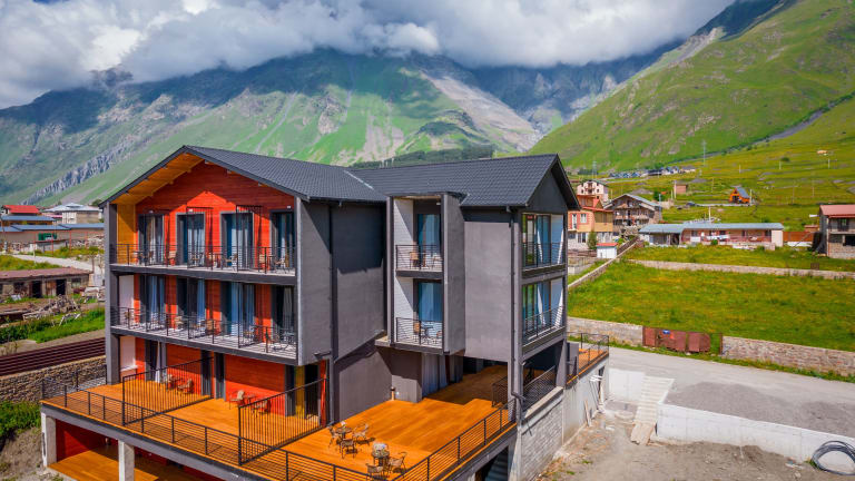 Das Hotel Darchi Kazbegi in Stepantsminda bietet Ihnen eine ideale Unterkunft mit einem wunderschönen Blick auf die Berge. Genießen Sie den Komfort der Zimmer, das freundliche Personal und die köstlichen Speisen im hoteleigenen Restaurant. Die Lage des Hotels ermöglicht Ihnen einen einfachen Zugang zu Sehenswürdigkeiten und Aktivitäten in der Umgebung.