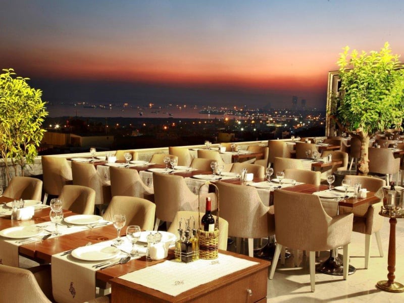 Im Hotelrestaurant können Sie traditionelle türkische Spezialitäten und internationale Gerichte genießen. Die Mahlzeiten werden auf der Dachterrasse serviert, von der aus Sie einen Panoramablick über Istanbul haben.