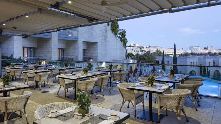 Das Hotel bietet Ihnen eine Vielzahl gastronomischer Einrichtungen, in denen Sie kulinarische Köstlichkeiten genießen können. Wählen Sie zwischen Gerichten der mediterranen und der italienischen Küche oder gönnen Sie sich einen einfachen Snack von der Poolbar, die im Sommer geöffnet ist. Genießen Sie dabei den Panoramablick auf die Altstadt von Jerusalem.