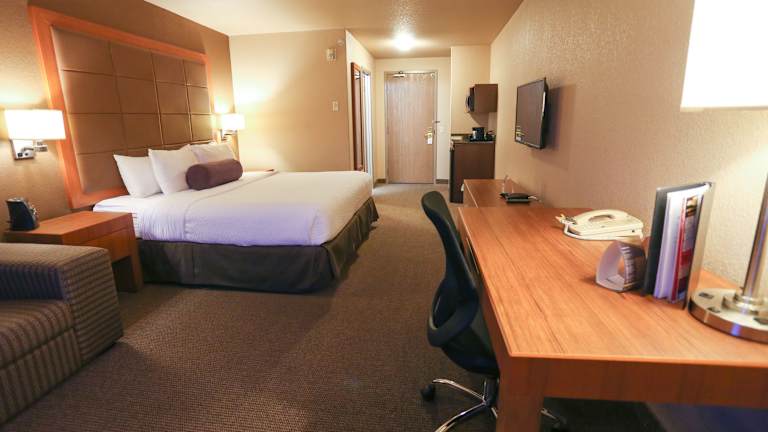 Die Zimmer im Days Inn by Wyndham Calgary Airport sind modern und komfortabel eingerichtet. Jedes Zimmer verfügt über einen Flachbild-TV und einen gemütlichen Sitzbereich, in dem Sie sich entspannen können. Eine Mikrowelle, ein Minikühlschrank und eine Kaffeemaschine stehen Ihnen ebenfalls zur Verfügung, um Ihren Aufenthalt so angenehm wie möglich zu gestalten. Kostenlose Ortsgespräche und WLAN sind in allen Zimmern verfügbar.