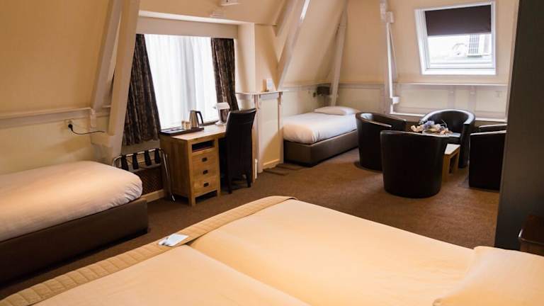 Die Zimmer im Hotel de Gulden Leeuw sind stilvoll eingerichtet und bieten einen gemütlichen Rückzugsort nach einem ereignisreichen Tag. Sie sind mit modernen Annehmlichkeiten ausgestattet und bieten den Gästen einen komfortablen Aufenthalt.