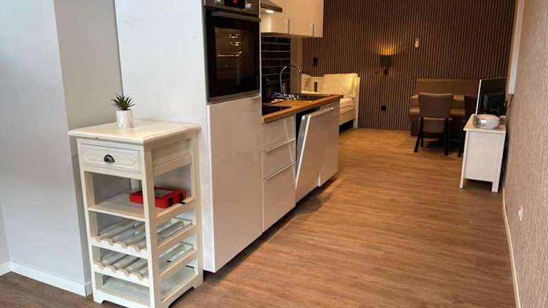 Die Wohneinheiten sind mit einer voll ausgestatteten Küchenzeile, einem Esstisch und einem Flachbild-TV mit Kabelkanälen ausgestattet. Zudem verfügen sie über ein eigenes Badezimmer mit Dusche und kostenlosen Pflegeprodukten. Die Küchenzeilen enthalten Kühlschrank, Ofen, Mikrowelle, Kaffeemaschine und Wasserkocher.