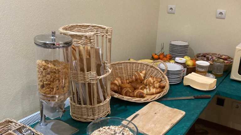 In der Unterkunft wird ein kontinentales Frühstück angeboten. Des Weiteren sind ein Café vor Ort sowie Möglichkeiten zur Essenslieferung in die Unterkunft vorhanden. Zusätzliche Optionen wie Wein, Sekt und Obst sind gegen Gebühren erhältlich.