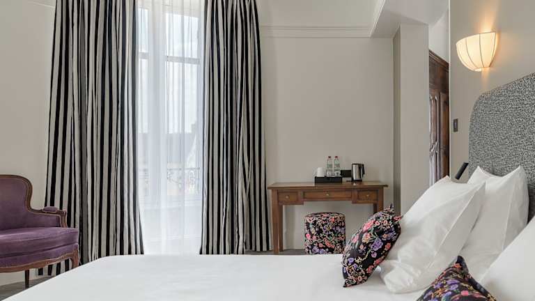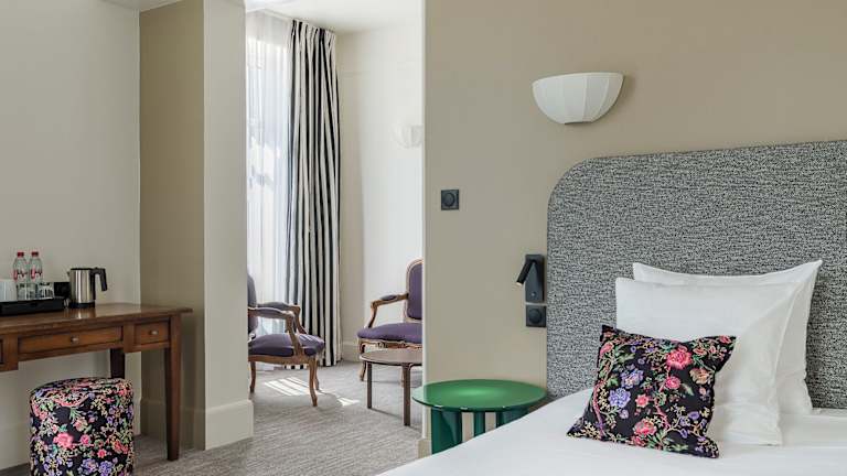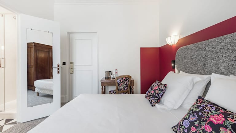 Die 36 Nichtraucherzimmer des Hotels sind mit antiken Möbeln und stilvollen Materialien eingerichtet und bieten geräumige und stilvolle Wohnbereiche. Jedes Zimmer verfügt über ein modernes Bad und bietet entweder einen Garten- oder Stadtblick. Zur Ausstattung gehören auch eine Klimaanlage, individuell regulierbare Heizung, ein Safe, WLAN und ein TV-Gerät. Einige Zimmer verfügen zudem über einen Balkon oder eine Terrasse.