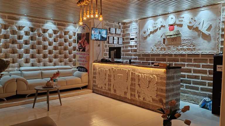Das Casa de Sal - Salt Hotel in Uyuni bietet eine einzigartige Unterkunftserfahrung im Stadtzentrum. Die Zimmer sind aus Salzblöcken erbaut und mit Dekor aus den Anden eingerichtet. Genießen Sie den Komfort von kostenfreiem WLAN und kostenfreien Privatparkplätzen. Das hoteleigene Restaurant bietet eine Vielzahl von Speisen und ein Zimmerservice steht Ihnen ebenfalls zur Verfügung. Entdecken Sie die Umgebung mit einem Fahrrad vom Hotel aus.
