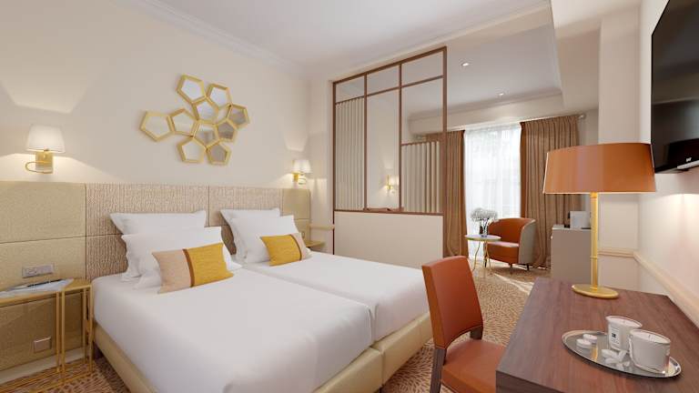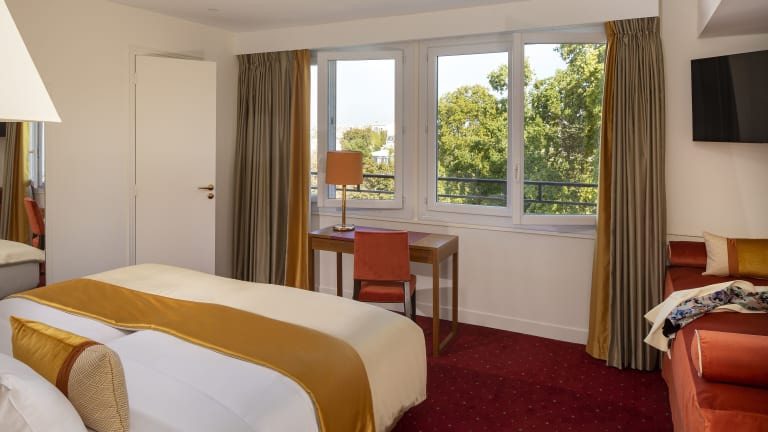 Das Hotel De Suede Saint Germain verfügt über 39 Nichtraucherzimmer, darunter 3 Junior-Suiten und Suiten. Die Zimmer sind über einen Aufzug erreichbar und bieten Annehmlichkeiten wie eine Klimaanlage, ein eigenes Bad, Sat-TV und einen Schreibtisch. Einige Zimmer bieten zudem einen Blick auf den Privatpark des Matignon.
