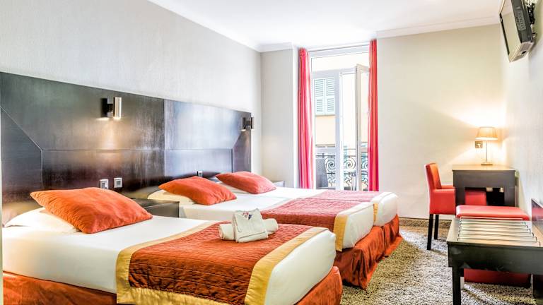 Das Hotel De Suède liegt im Zentrum von Nizza, in unmittelbarer Nähe zur berühmten Promenade des Anglais und zum Strand. Die Altstadt ist etwa 500 m entfernt. In unmittelbarer Nähe finden Sie eine Vielzahl von Einkaufs- und Unterhaltungsmöglichkeiten sowie Anschlüsse an das öffentliche Verkehrsnetz. Der Hauptbahnhof ist etwa 1 km entfernt und das Museum Mamac erreichen Sie nach ca. 1,5 km. Der Flughafen von Nizza befindet sich etwa 6 km außerhalb des Stadtzentrums.