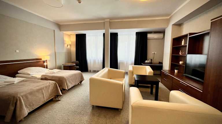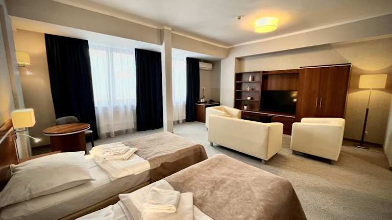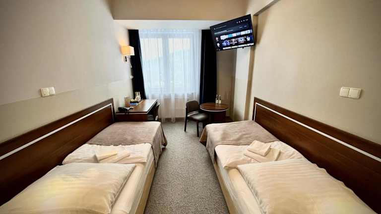 Die Zimmer im Hotel Szyndzielnia sind mit Teppichböden, großen Fenstern, einem Flachbild-TV und einem Kleiderschrank ausgestattet. Jedes Zimmer verfügt über ein eigenes Bad und kostenfreies WLAN.