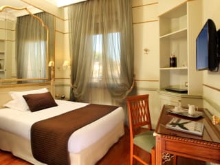 Das Hotel Degli Aranci ist eine exklusive Unterkunft im eleganten Stadtteil Parioli in Rom. Das historische Gebäude aus dem 19. Jahrhundert bietet elegante Zimmer und ein Restaurant mit einem schönen Außenbereich. Der umliegende Garten mit Orangenbäumen verleiht dem Hotel eine besondere Atmosphäre. Die Lage des Hotels ist ideal, nur 5 Gehminuten vom Bahnhof Euclide entfernt, der eine direkte Verbindung zur zentralen Piazza del Popolo bietet. Die Zimmer sind klimatisiert und bieten kostenloses WLAN, einen Fernseher mit Pay-per-View-Kanälen, eine Minibar und ein eigenes Badezimmer mit Hydromassage-Dusche oder Badewanne. Einige Zimmer verfügen über einen Balkon. Das Restaurant Il Fiore d'Arancio bietet den Gästen ganztägig Snacks, Getränke und leichte Mahlzeiten. Das Hotel liegt in der Nähe des beliebten Auditorium Parco della Musica und ist gut mit dem Bahnhof Termini und dem Olympiastadion verbunden.