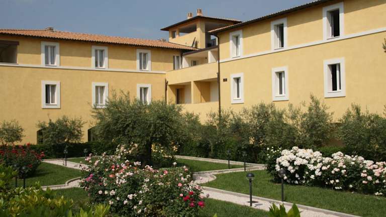 Das Delfina Palace Hotel liegt in Foligno, in der Nähe der Ausfahrt Foligno Nord der Autobahn S.S. 75. Die zentrale Lage des Hotels ermöglicht es Ihnen, die umbrische Region bequem zu erkunden und die wichtigsten Städte wie Assisi, Perugia, Spello, Orvieto und Montefalco zu besuchen. Die Umgebung des Hotels ist von üppigem Grün geprägt, mit einem hoteleigenen Park, Olivenhainen und hohen Bäumen.
